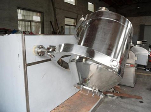 在三維混合機的工作過程中,由于攪拌筒體的多向運動,加速了混合過程中各種物料的流動和擴散,避免了普通攪拌機內(nèi)物料重力偏析和堆積而產(chǎn)生的離心力,攪拌死角能有效地保證混合料的質(zhì)量。